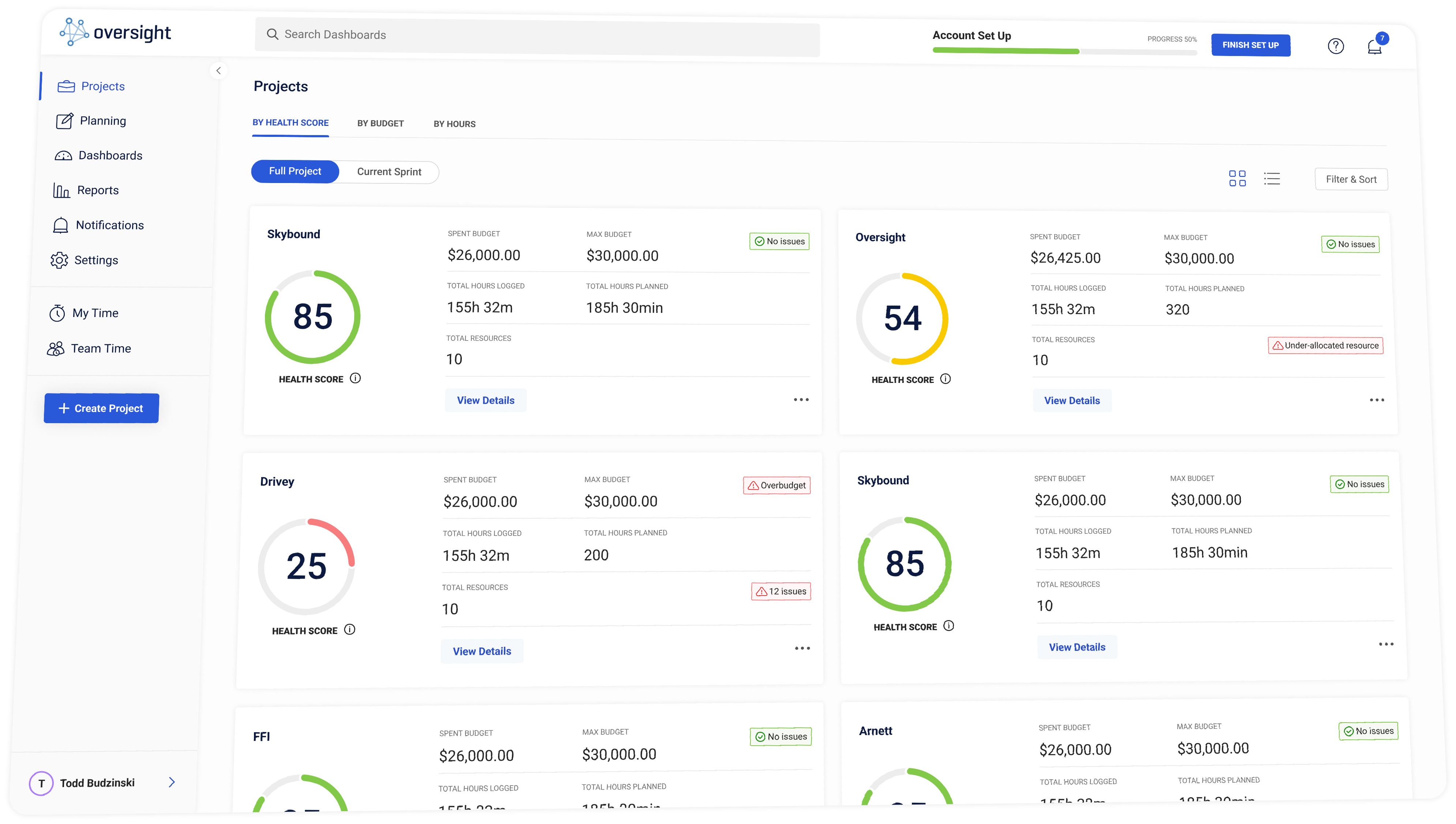 Designed from concept to completion, low and high-fidelity user interface and user flow prototypes of Oversight, a SaaS resource management web application.